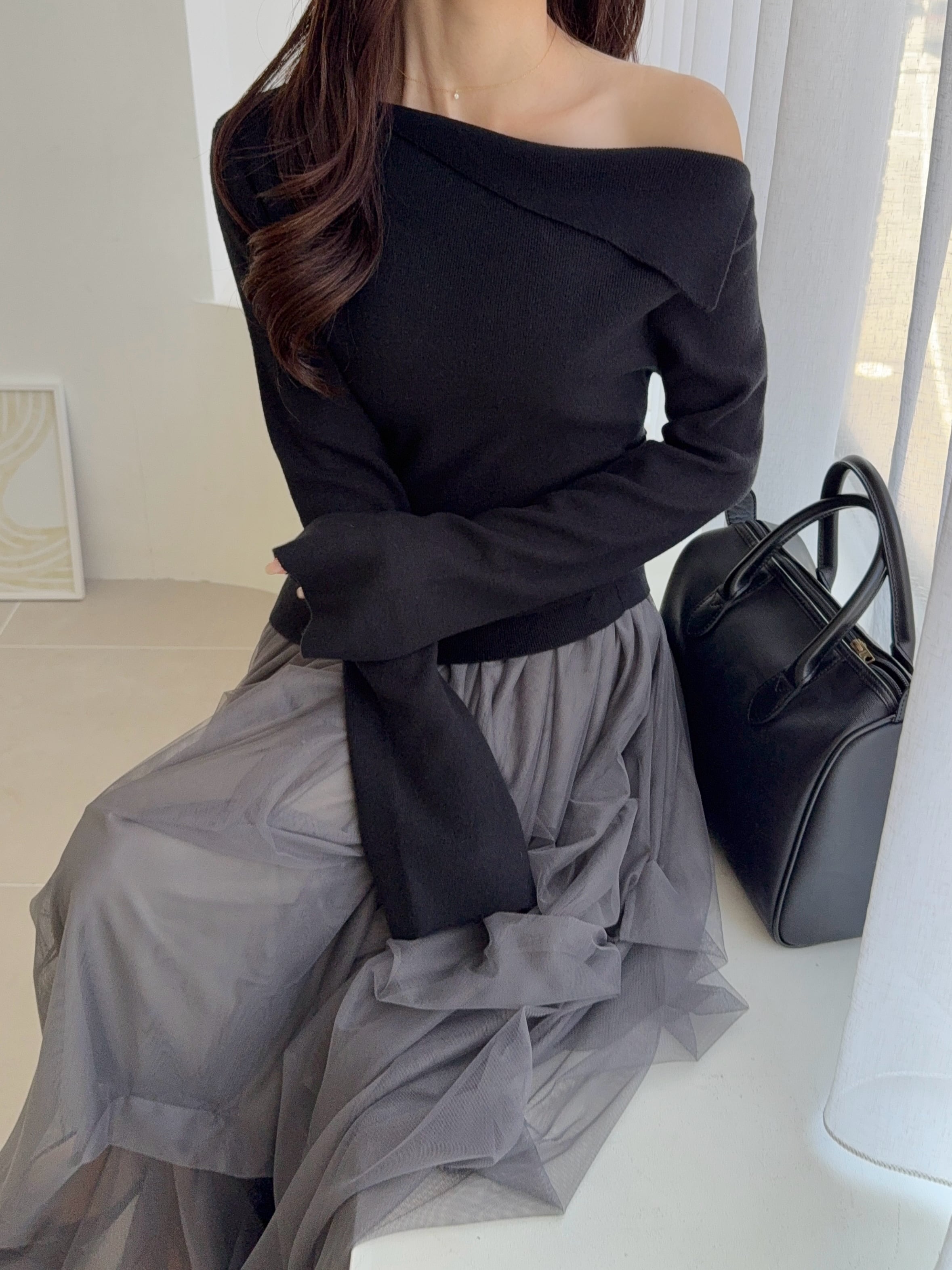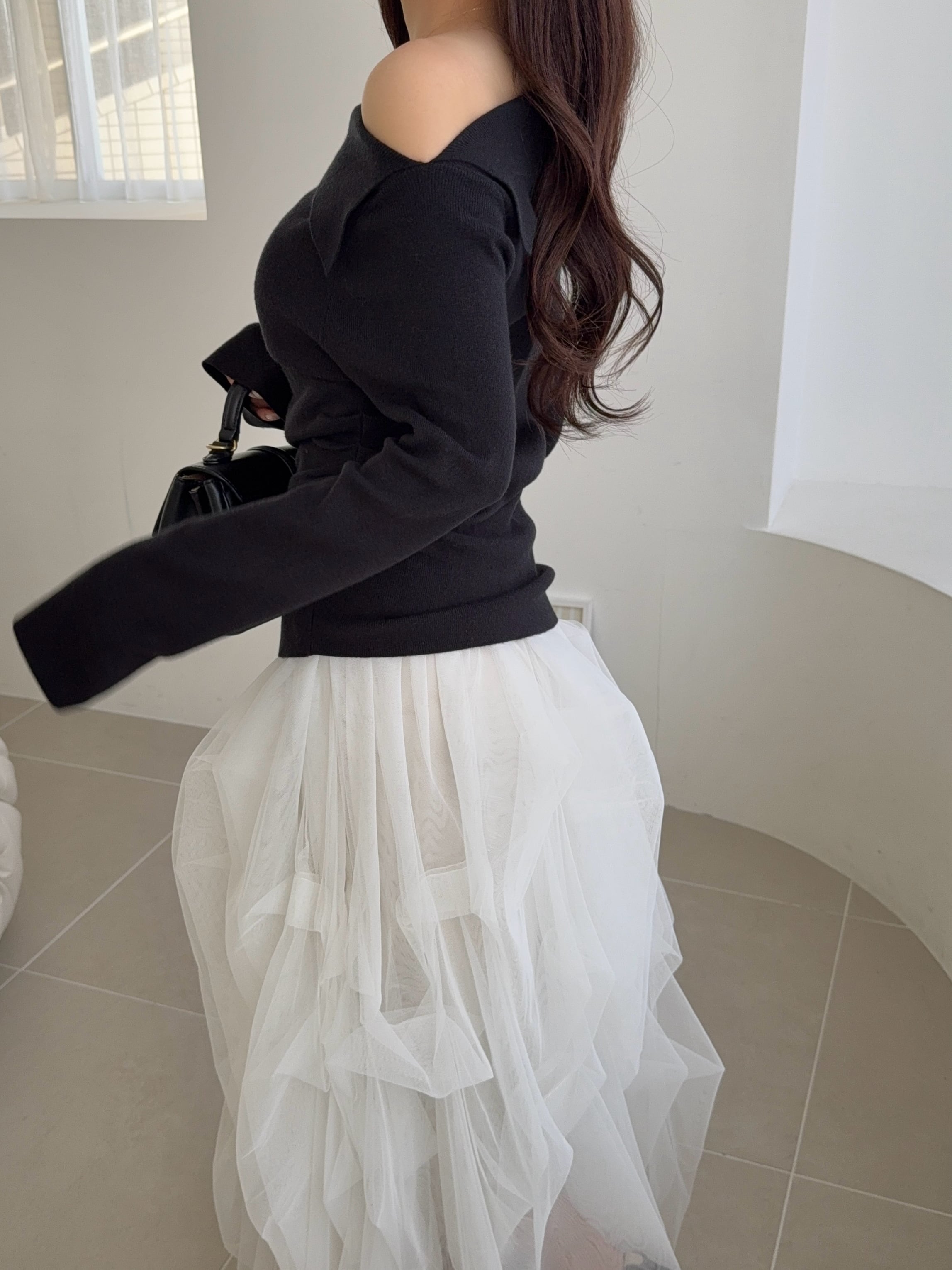【 予約販売期間限定10%off+送料無料 】one shoulder knit tops( Black )